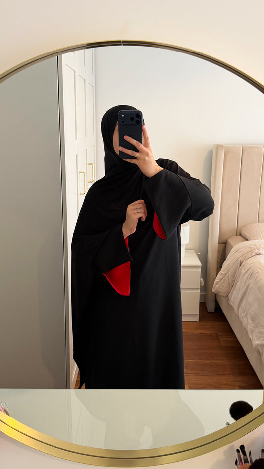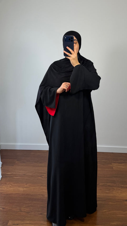 ABAYA INAYA NOIR/MANCHES ROUGE