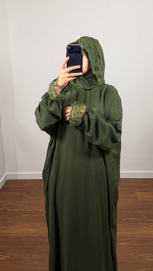 ROBE DE PRIÈRE DENTELLE VERT KAKI