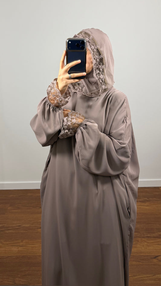 Victime de son succèsROBE DE PRIÈRE DENTELLE TAUPE