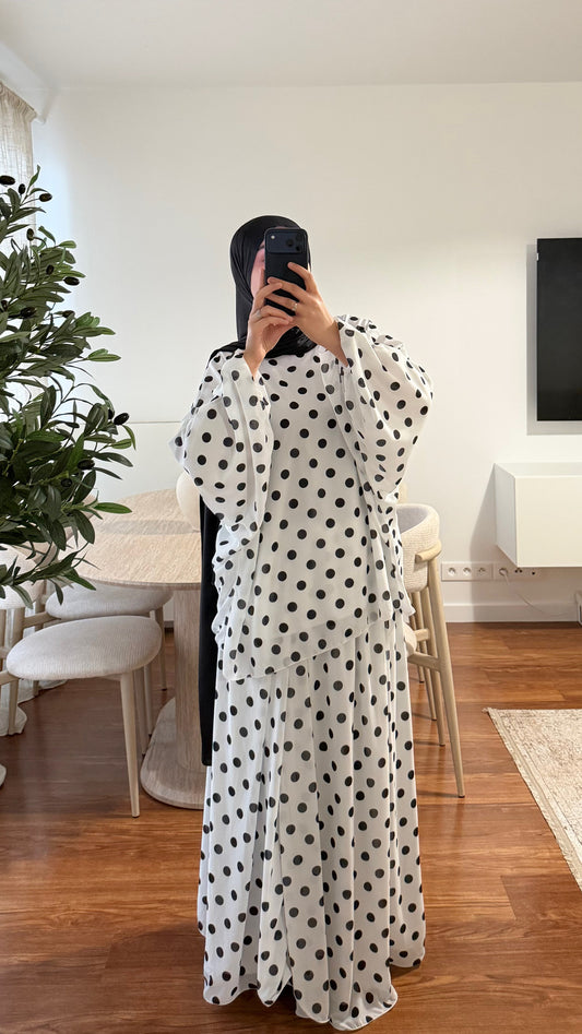JUPE LONGUE À POIS BLANC (GROS POIS)