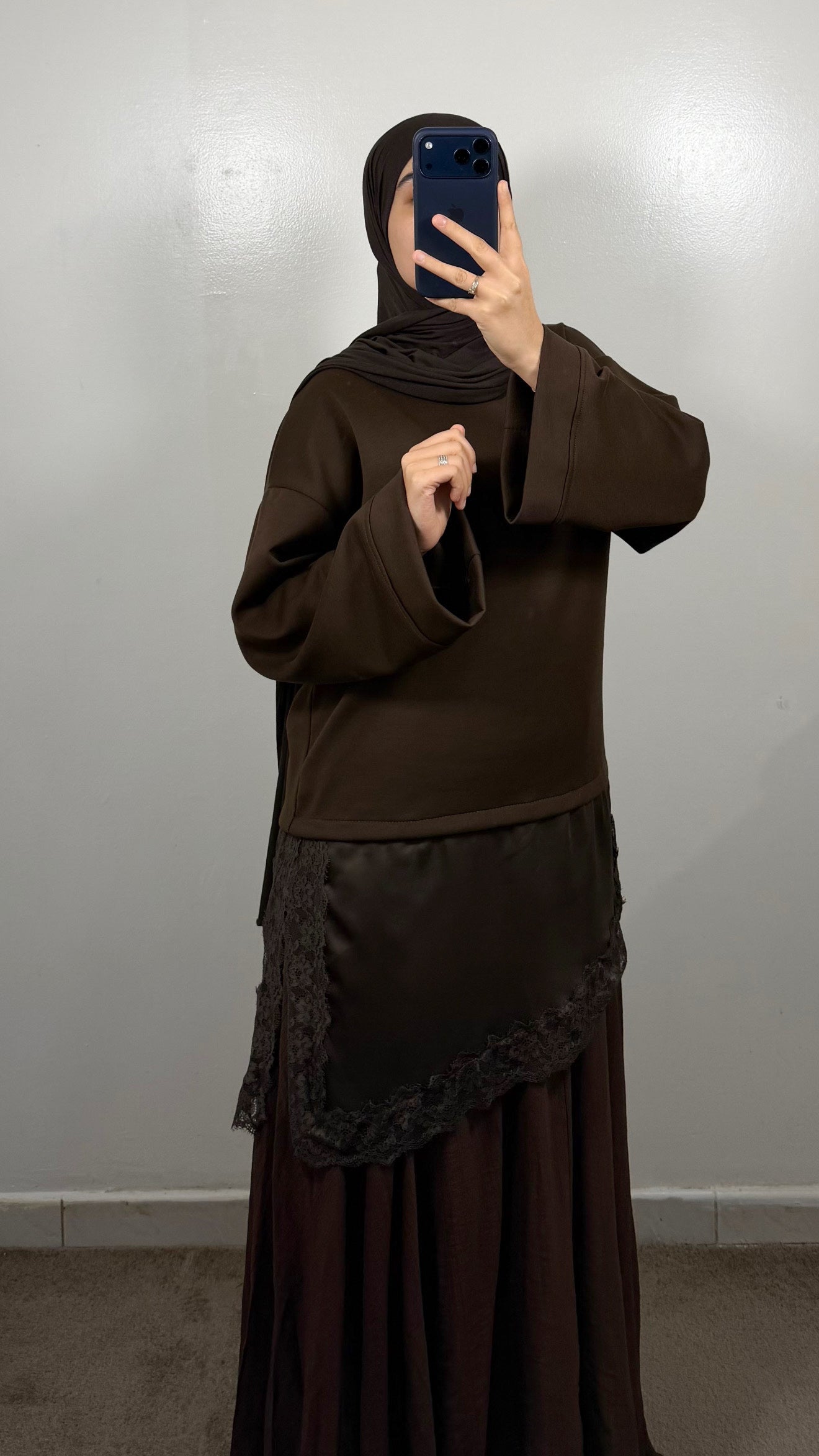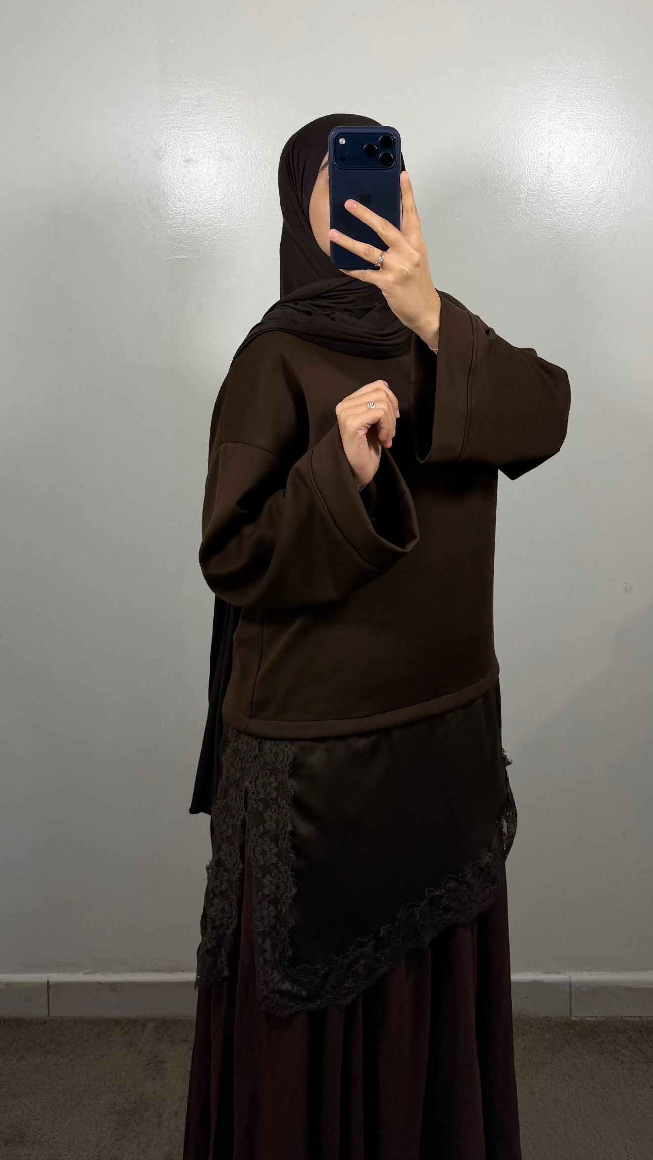 TOP T-SHIRT EPAIS DENTELLE MARRON
